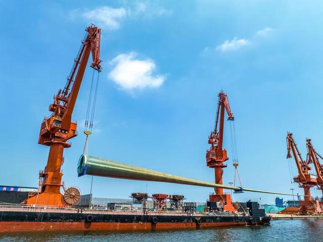 沿著蓬萊港海工產(chǎn)業(yè)園區(qū)行走,映入眼簾的是排列整齊的巨大葉片,葉片通體白色,一眼望去,看不到葉片的盡頭,讓人感覺自己仿佛走進(jìn)了《格列佛游記》里的巨人王國。6月17日,“行走先行區(qū) 看綠色低碳高質(zhì)量發(fā)展”主題采訪活動(dòng)來到蓬萊港,感受風(fēng)電“四大件”挺進(jìn)“兩海”的壯觀景象。