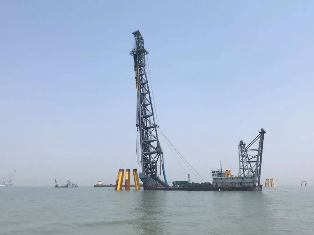 嵊泗5#、6#項(xiàng)目位于浙江省大衢洋海域東海大橋東側(cè),總裝機(jī)容量為282MW,安裝45臺(tái)6.25MW風(fēng)機(jī),全部采用高樁承臺(tái)基礎(chǔ)型式(八樁)。其中41個(gè)機(jī)位鋼管樁直徑為2米,4個(gè)機(jī)位鋼管樁為變徑樁,直徑為2-2.3米,樁長均在74-85米之間。項(xiàng)目場區(qū)實(shí)測海流流速達(dá)3m/s,施工船機(jī)走錨風(fēng)險(xiǎn)極高、安全隱患大。為此,項(xiàng)目部持續(xù)聚焦沉樁施工安全管控,精準(zhǔn)定位進(jìn)點(diǎn),精確把控鋼管樁入泥深度、傾斜度、錘擊能量等數(shù)據(jù),保證施工安全與質(zhì)量。