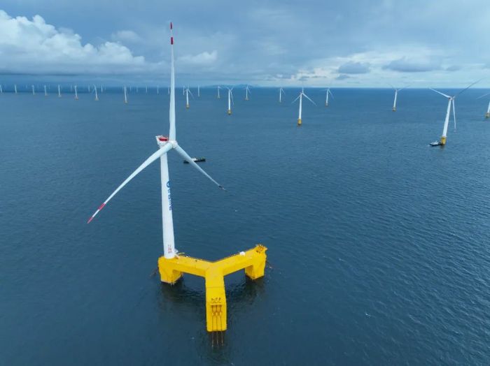 ▲ “三峽引領(lǐng)號”漂浮式風(fēng)機 攝影:陳磊