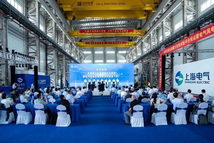 日前,全球最大風(fēng)電試驗(yàn)平臺(tái)——上海電氣風(fēng)電全功率平臺(tái)在上海電氣風(fēng)電濱?;赝哆\(yùn)。當(dāng)天,上海電氣風(fēng)電濱?;厥着_(tái)機(jī)組同時(shí)下線。