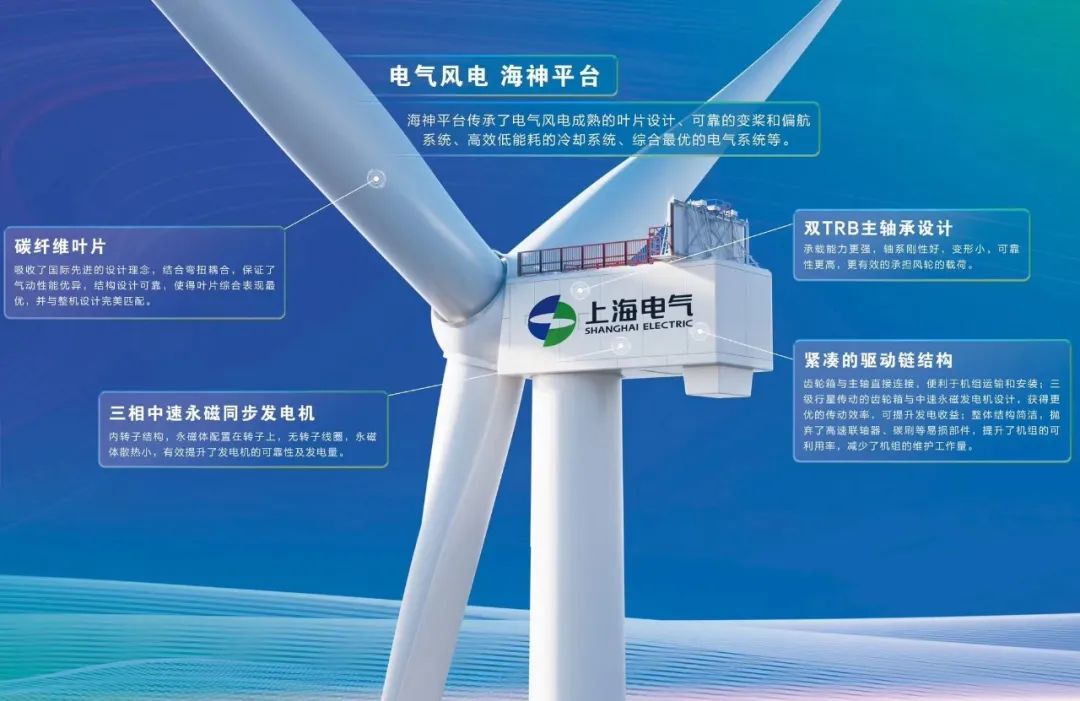 海神平臺傳承了電氣風電成熟的葉片設計、可靠的變槳和偏航系統、高效低能耗的冷卻系統、綜合最優(yōu)的電氣系統等。在碳纖維葉片、雙TRB主軸承設計、三相中速永磁同步發(fā)電機、緊湊的驅動鏈結構等方面創(chuàng)新設計,并針對不同海域的風資源稟賦和海洋地質條件,因地制宜,提供適合當地的最佳解決方案。