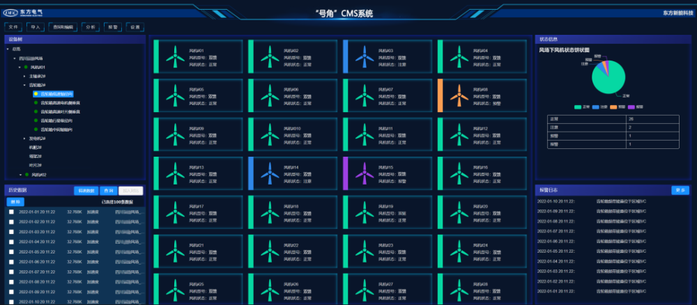 “號角”CMS系統(tǒng)是東方新能科技與東方研究院聯(lián)合攻關(guān),基于萬余臺風(fēng)電機(jī)組的運(yùn)行數(shù)據(jù)和運(yùn)維經(jīng)驗,針對風(fēng)電機(jī)組狀態(tài)監(jiān)測系統(tǒng)開發(fā)。該系統(tǒng)集成了數(shù)據(jù)管理、智能診斷、多維度統(tǒng)計預(yù)警、機(jī)器學(xué)習(xí)、專家服務(wù)等先進(jìn)算法和手段,具有硬件通用化、數(shù)據(jù)開放化、分析標(biāo)準(zhǔn)化等特點,能夠與風(fēng)電機(jī)組主控系統(tǒng)直接通訊,實現(xiàn)實時監(jiān)測、自動診斷和保護(hù)停機(jī)等功能。“號角”CMS系統(tǒng)與“哨塔”輕量化預(yù)警平臺、“新能智維”信息化系統(tǒng)一起,構(gòu)成東方新能科技智慧運(yùn)維體系。