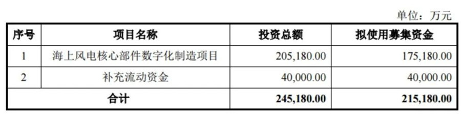 12月12日,金雷科技股份公司(簡稱“金雷股份”)發(fā)布《向特定對象發(fā)行股票募集說明書》(修訂稿),擬募集資金21.52億元,用于海上風(fēng)電核心部件數(shù)字化制造項目(17.52億元)和補(bǔ)充流動資金(4億元)。