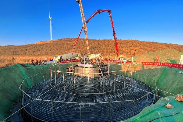 在河南省嵩縣項(xiàng)目建設(shè)現(xiàn)場(chǎng),一派熱火朝天的施工景象。嚴(yán)寒天氣中,中國(guó)節(jié)能首個(gè)產(chǎn)業(yè)助力鄉(xiāng)村振興重點(diǎn)項(xiàng)目——中節(jié)能嵩縣九皋鎮(zhèn)風(fēng)電場(chǎng)項(xiàng)目工程現(xiàn)場(chǎng)塔吊林立,運(yùn)輸車輛往來(lái)穿梭,基礎(chǔ)澆筑井然有序,以一個(gè)個(gè)風(fēng)機(jī)基礎(chǔ)構(gòu)成的“同心圓”應(yīng)了農(nóng)歷新年“和美團(tuán)圓”之意。