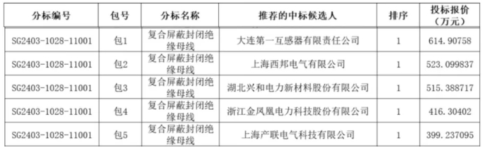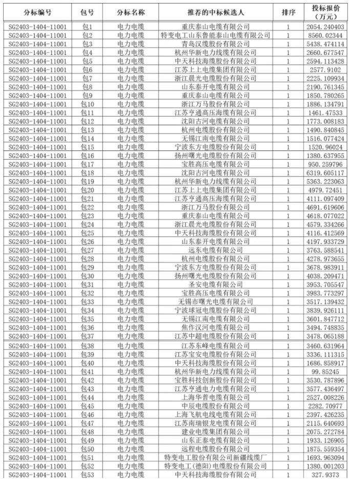 電纜附件一共16包,長纜科技中標(biāo)包1,報(bào)價(jià)為1186.759109萬元,中標(biāo)金額居16家中標(biāo)廠商中第一位置。