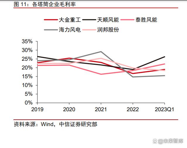 塔筒樁基存在提價(jià)預(yù)期,盈利能力有望改善。受益新增風(fēng)電裝機(jī)規(guī)模高增速和海風(fēng)項(xiàng) 目深遠(yuǎn)?;l(fā)展,風(fēng)電行業(yè)高景氣背景下塔筒樁基需求有望迎來(lái)高速增長(zhǎng)。從年度維度看, 參考?xì)v史季節(jié)性因素,二季度塔筒交付旺季來(lái)臨,頭部企業(yè)訂單普遍已排至下半年,全年 產(chǎn)能利用率預(yù)計(jì)維持飽和狀態(tài)。從出貨增速維度看,預(yù)計(jì)各塔筒樁基企業(yè) 2023、2024 年 均保持較高增速,行業(yè)存在提價(jià)預(yù)期,加工費(fèi)有望上行,改善塔筒盈利能力。一季度頭部 企業(yè)業(yè)績(jī)已基本兌現(xiàn),盈利能力環(huán)比好轉(zhuǎn),隨著交付旺季的來(lái)臨和擴(kuò)產(chǎn)項(xiàng)目的落地,塔筒 樁基有望迎來(lái)量利齊升的快速發(fā)展期。