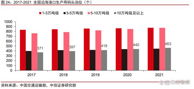 碼頭資源稀缺,港口岸線審批難度大。碼頭建設(shè)需通過省政府審批滿足規(guī)劃,港口岸 線使用權(quán)需要通過國(guó)家交通運(yùn)輸部批復(fù),碼頭岸線的資源審批難度持續(xù)加大,同時(shí)港口建 設(shè)需要自然條件良好的岸線資源,對(duì)周邊配套資源也有較高的要求。據(jù)中國(guó)交通運(yùn)輸部披 露的數(shù)據(jù),截至 2021 年底,我國(guó)萬(wàn)噸級(jí)及以上泊位數(shù)量共計(jì) 2659 個(gè),風(fēng)電塔筒管樁運(yùn)輸 所需的 10 萬(wàn)噸級(jí)及以上泊位數(shù)量共計(jì) 463 個(gè),占萬(wàn)噸級(jí)及以上泊位數(shù)量的 17%,年新增 數(shù)僅 23 個(gè)。因此已獲審批的港口碼頭等生產(chǎn)基地逐步成為稀缺資源,掌握相關(guān)資源的廠 商先發(fā)優(yōu)勢(shì)顯著。