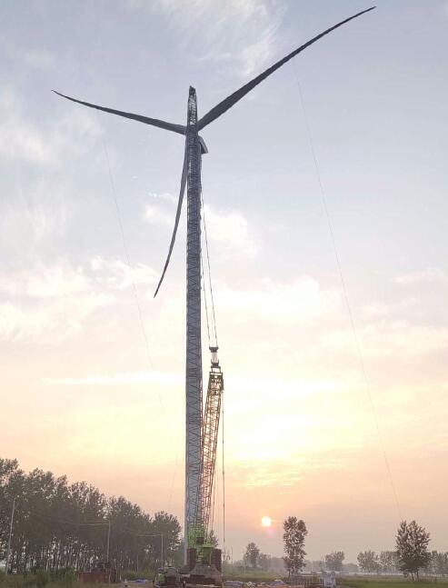 9月15日,中國能建安徽電建一公司承建的深能劉老莊50兆瓦風電項目首臺風機吊裝完成。