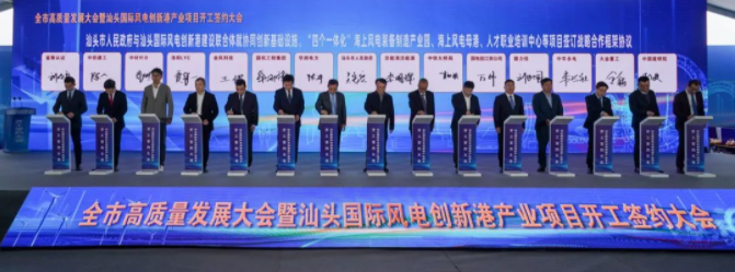 大會云集了金風(fēng)科技、中車永濟(jì)、德力佳、中材科技、北京鑒衡、華潤電力、京能集團(tuán)等國內(nèi)海上風(fēng)電裝備制造龍頭企業(yè)及能源企業(yè),為海上風(fēng)電母港、“四個一體化”海上風(fēng)電裝備制造產(chǎn)業(yè)園、廣東省臨海試驗基地項目等一批海上風(fēng)電產(chǎn)業(yè)關(guān)鍵環(huán)節(jié)重點項目舉辦了集中簽約開工儀式,正式拉開了汕頭國際風(fēng)電創(chuàng)新港建設(shè)熱潮!