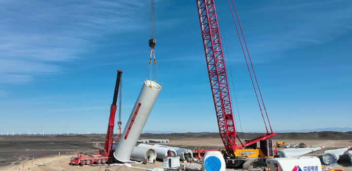 10月3日,由水電十一局牽頭總包承建的電建集團(tuán)投資建設(shè)的陸上最大風(fēng)電項(xiàng)目——新疆巴里坤60萬(wàn)千瓦風(fēng)儲(chǔ)項(xiàng)目首臺(tái)風(fēng)機(jī)塔筒成功開(kāi)始吊裝。