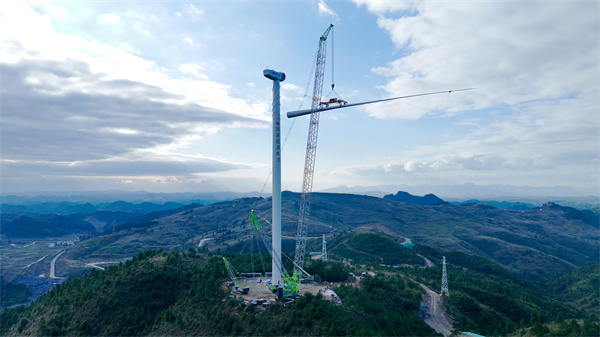 三都縣位于貴州省黔南州東南部,地處“月亮山、雷公山”腹地,境內(nèi)以山地為主,風(fēng)力資源豐富,點(diǎn)多面廣,電網(wǎng)接入條件優(yōu)良,消納能力強(qiáng),新能源風(fēng)電項(xiàng)目建設(shè)前景廣闊。11月24日,三都縣風(fēng)電場(chǎng)項(xiàng)目之一的周覃風(fēng)電場(chǎng),兩臺(tái)高120多米的風(fēng)力發(fā)電機(jī)屹立在山頂上,工人們正在對(duì)塔上設(shè)備開(kāi)展偏航、安全鏈、控制等調(diào)試工作。