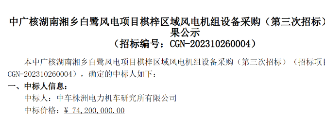 公告顯示,中車株洲電力機(jī)車研究所有限公司成功中標(biāo)該項(xiàng)目,中標(biāo)價(jià)格為74,200,000.00元。