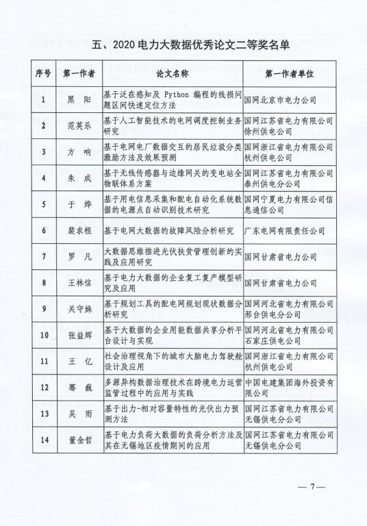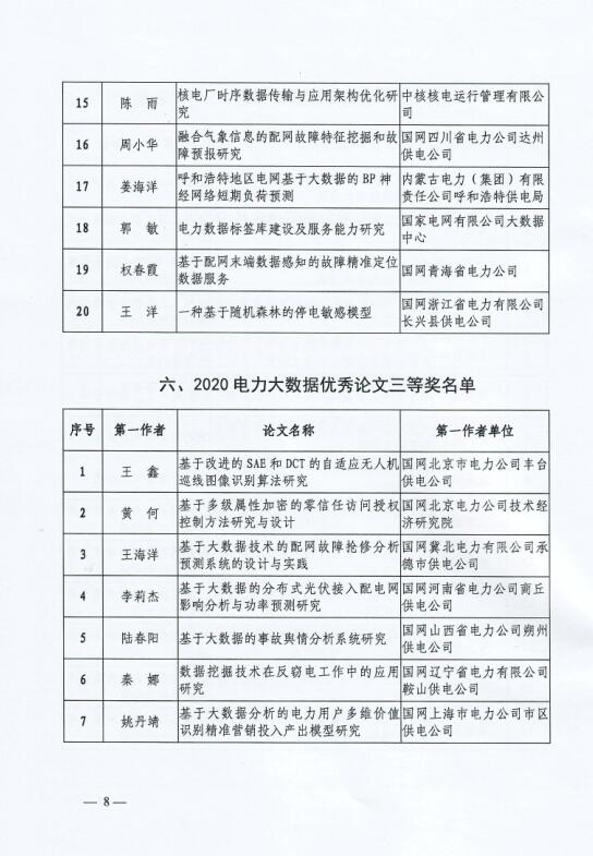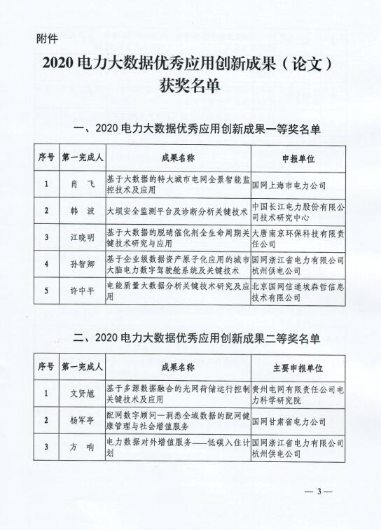 附件:2020電力大數(shù)據(jù)優(yōu)秀應用創(chuàng)新成果(論文)獲獎名單