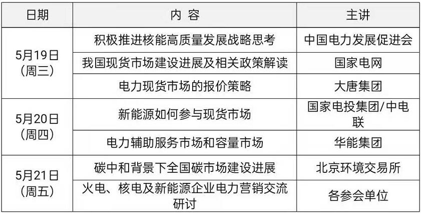 為幫助發(fā)電企業(yè)、售電公司更好地了解現(xiàn)貨交易規(guī)則、試點(diǎn)省份營(yíng)運(yùn)現(xiàn)狀、市場(chǎng)營(yíng)銷(xiāo)策略、電力輔助服務(wù)等情況,中國(guó)電力發(fā)展促進(jìn)會(huì)計(jì)劃舉辦“2021年電力現(xiàn)貨市場(chǎng)培訓(xùn)研討會(huì)”。