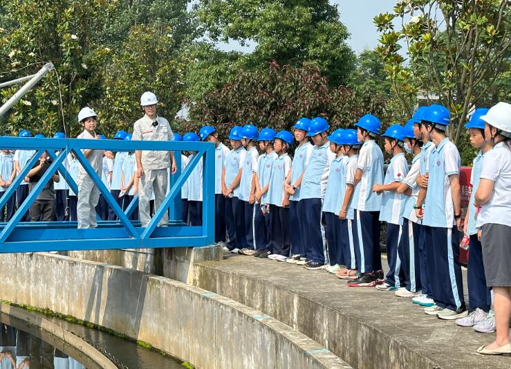 活動現(xiàn)場,技術(shù)人員們帶領(lǐng)學(xué)生參觀污水處理,零距離了解污水“變廢為寶”的全過程,向?qū)W生們普及環(huán)保知識,傳播綠色環(huán)保理念。“水資源是無窮無盡的嗎?”“我們生活中產(chǎn)生的大量廢水都去哪了呢?”參觀過程中,同學(xué)們帶著滿滿的好奇不斷提問。當(dāng)了解到一滴污水需經(jīng)過格柵過濾、沉砂處理、生物處理、二次沉淀處理、化學(xué)絮凝沉淀等十幾道工序、22小時的處理才能變成清水,同學(xué)們都覺得非常驚訝。在污水過濾實驗環(huán)節(jié),同學(xué)們自己設(shè)計流程,運用活性炭、石子等制造過濾設(shè)備,親自體驗了污水變清的過程,深切感受到每一滴水的來之不易。