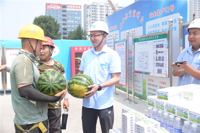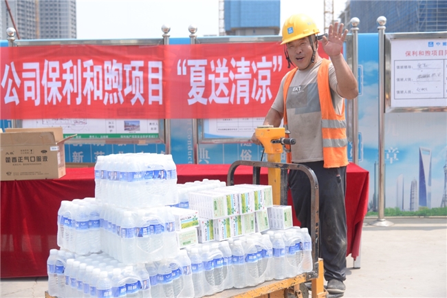 慰問中,領(lǐng)導(dǎo)班子成員親手將藿香正氣水等防暑降溫慰問品送到奮戰(zhàn)在一線的工人手上,黨支部書記、項(xiàng)目指揮長叢培建強(qiáng)調(diào),我們要切實(shí)把工人的身體健康放在首位,不斷改善一線勞動(dòng)者的工作條件,嚴(yán)格落實(shí)防暑降溫保障工作,確保奮戰(zhàn)在一線的勞動(dòng)者安全度夏,保障生產(chǎn)工作有序開展,積極創(chuàng)造更好的勞動(dòng)環(huán)境,切實(shí)維護(hù)好工人合法權(quán)益。