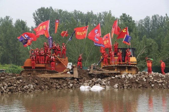 搶險過程中,中國安能充分發(fā)揮集團化作戰(zhàn)優(yōu)勢、專業(yè)技術(shù)優(yōu)勢、頑強作風(fēng)優(yōu)勢,采取“道路搶通、主堤防護、圍堰進占、潰口封堵”的戰(zhàn)法實施救援;針對搶修筑路保通難、保障多元融合難、堤防加固圍堰搶筑時間緊、車輛眾多指揮難等不利因素,積極與地方政府共同研究道路疏通、保通方案,確保封堵石料及時運抵救援現(xiàn)場;全體搶險隊員發(fā)揚特別能吃苦、特別能戰(zhàn)斗的頑強精神,頂烈日、斗酷暑,24小時輪班作業(yè),全力以赴加快進度,提前完成第一道防線和第二道防線加固任務(wù)。