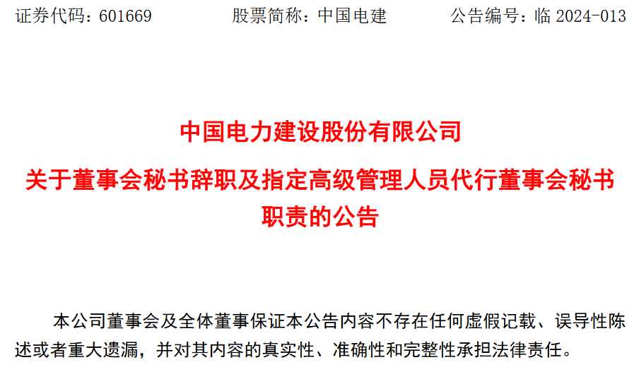 中國電建發(fā)布公告稱,中國電力建設股份有限公司(以下簡稱“公司”)董事會秘書丁永泉先生因年齡原因(退休)已向公司董事會遞交書面辭職報告,申請辭去公司董事會秘書職務。