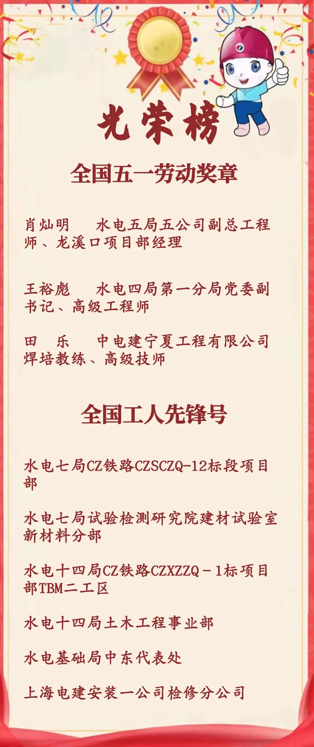 4月28日,2024年慶祝“五一”國際勞動節(jié)暨全國五一勞動獎和全國工人先鋒號表彰大會在北京人民大會堂舉行。其中,中國電建9個集體和個人榮獲全國五一勞動獎章和全國工人先鋒號。