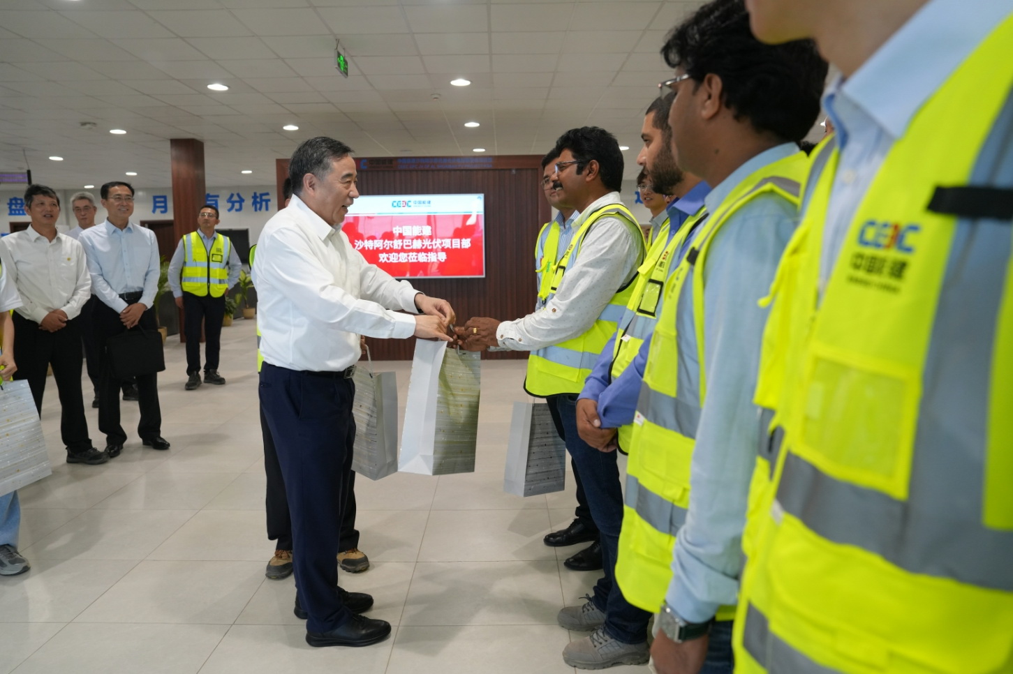 當(dāng)?shù)貢r間6月10日,中國能建黨委書記、董事長宋海良一行赴沙特阿爾舒巴赫2.6吉瓦光伏項目進行現(xiàn)場調(diào)研,開展端午節(jié)慰問活動,強調(diào)要堅定不移推動國際業(yè)務(wù)優(yōu)先優(yōu)質(zhì)協(xié)同發(fā)展,強化資源高效統(tǒng)籌,深化“三引領(lǐng)一合作”,全力打造更多“一帶一路”示范標桿項目。