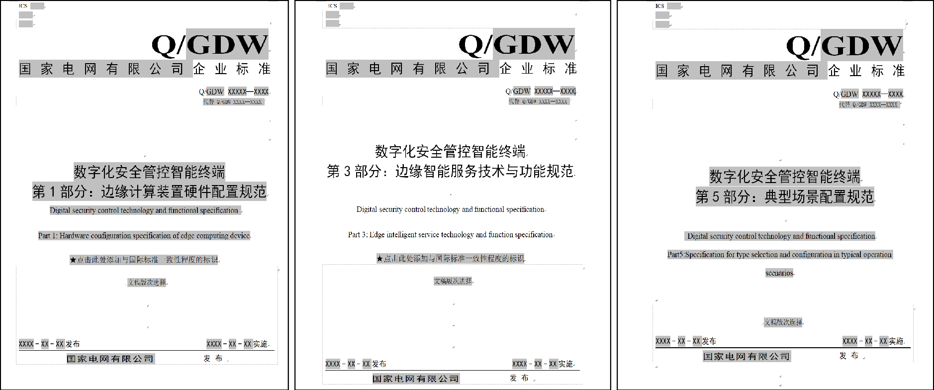 標(biāo)準(zhǔn)規(guī)范是數(shù)字化安全管控智能終端統(tǒng)一開放,體系化應(yīng)用的重要基礎(chǔ)保障。在數(shù)字化安全管控智能終端建設(shè)過程中,國(guó)網(wǎng)信通產(chǎn)業(yè)集團(tuán)同步總結(jié),已編制修訂《邊緣計(jì)算裝置硬件配置規(guī)范》、《邊緣智能服務(wù)技術(shù)與功能規(guī)范》、《典型場(chǎng)景配置規(guī)范》等標(biāo)準(zhǔn)規(guī)范,進(jìn)一步規(guī)范數(shù)字化安全管控體系支撐,促進(jìn)安全管控向數(shù)字化、智能化轉(zhuǎn)型升級(jí)應(yīng)用。