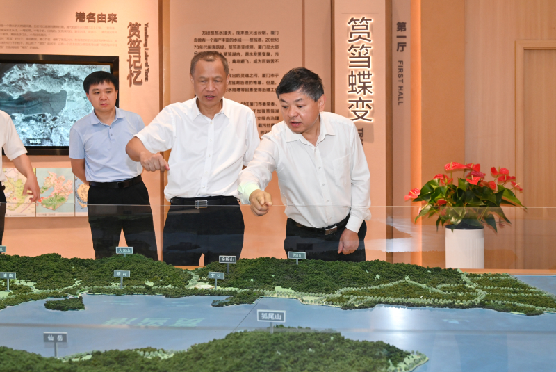 廈門是習近平生態(tài)文明思想的重要孕育地和先行實踐地。22日上午,黃潤秋首先來到廈門市筼筜故事館,參觀學習習近平總書記親自謀劃和推動筼筜湖綜合治理的重要經(jīng)驗,了解主要做法和取得成效。他強調(diào),要深學篤行以筼筜湖綜合治理為代表的習近平生態(tài)文明思想“廈門實踐”,深刻領會“依法治湖、截污處理、清淤筑岸、搞活水體、美化環(huán)境”20字方針所蘊含的科學思維與方法,以更高標準推進生態(tài)環(huán)境修復治理。隨后,黃潤秋前往廈門市海上環(huán)衛(wèi)站調(diào)度中心,并乘船察看海漂垃圾綜合治理情況。他指出,要堅持系統(tǒng)觀念,統(tǒng)籌源頭管控和末端治理,善于利用無人機等技術(shù)手段,強化海漂垃圾常態(tài)化監(jiān)管,不斷健全海洋垃圾綜合治理長效機制。黃潤秋還來到廈門東南部海域?qū)嵉乜疾烀利惡辰ㄔO情況。他表示,要堅持陸海統(tǒng)籌、河海聯(lián)動,推動構(gòu)建從山頂?shù)胶Q蟮谋Wo治理大格局,持續(xù)開展海洋生態(tài)修復和環(huán)境綜合治理,不斷深化海灣型生態(tài)城市建設。
