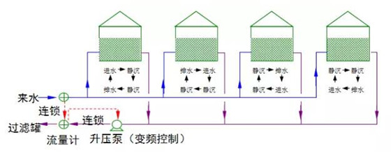 序批沉降流程介紹:序批沉降包括三個(gè)階段,即進(jìn)水階段→靜止沉降階段→排水階段。采用的沉降罐個(gè)數(shù)為4座(同一時(shí)間1座罐進(jìn)水、1座罐排水、2座罐靜止沉降),來(lái)水首先滿(mǎn)負(fù)荷進(jìn)入4個(gè)沉降罐中的1個(gè),與此同時(shí),另外2座沉降罐靜止沉降,剩下1個(gè)沉降罐排水;當(dāng)?shù)?個(gè)沉降罐進(jìn)滿(mǎn)水后開(kāi)始進(jìn)行靜止沉降,與此同時(shí),原先進(jìn)行靜止沉降的2座沉降罐其中1座已經(jīng)沉降12h,開(kāi)始排水,另外1座繼續(xù)靜止沉降,剩下的1個(gè)沉降罐已排空,開(kāi)始進(jìn)水,而后依次循環(huán)來(lái)實(shí)現(xiàn)序批式靜止沉降。