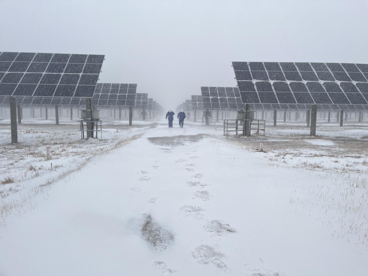 在光伏發(fā)電方面,面對低溫、暴雪、強降雨等惡劣天氣,中國節(jié)能所屬太陽能公司各電站開啟“抗寒保發(fā)保供”模式,結(jié)合電站所在地季節(jié)氣候特點、設(shè)備歷年運行數(shù)據(jù)、設(shè)備特性等,研究制定重點設(shè)備檢查方案與應(yīng)急預(yù)案及事故處理細則,加強應(yīng)急值班管理,持續(xù)做好運行監(jiān)控分析和重點設(shè)備專項檢查工作,全力應(yīng)對寒冬挑戰(zhàn)。