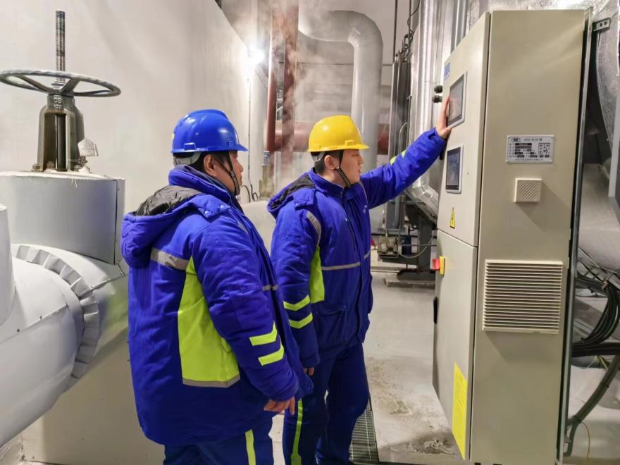 中國節(jié)能所屬中國環(huán)保行唐公司運行人員檢查供熱首站運行狀態(tài)
