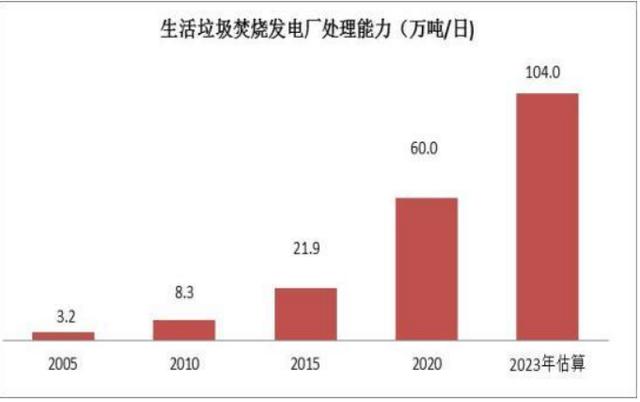 2021年,國(guó)家發(fā)展改革委、住房城鄉(xiāng)建設(shè)部發(fā)布的《“十四五”城鎮(zhèn)生活垃圾分類和處理設(shè)施發(fā)展規(guī)劃》提出,到2025年底,全國(guó)城鎮(zhèn)生活垃圾焚燒處理能力達(dá)到80萬噸/日, 焚燒處理能力占城鎮(zhèn)生活垃圾處理能力的65%左右。