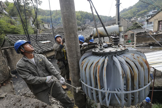 中國電力網(wǎng)訊 11月4日一大早,在浙江寧波鄞州區(qū)塘溪鎮(zhèn)東山村,三輛電力工程車正載著二十余名工作人員沿著山路蜿蜒而上,當(dāng)天,他們的工作任務(wù)是拆除大嵩片區(qū)內(nèi)最后一臺(tái)屋頂變壓器。