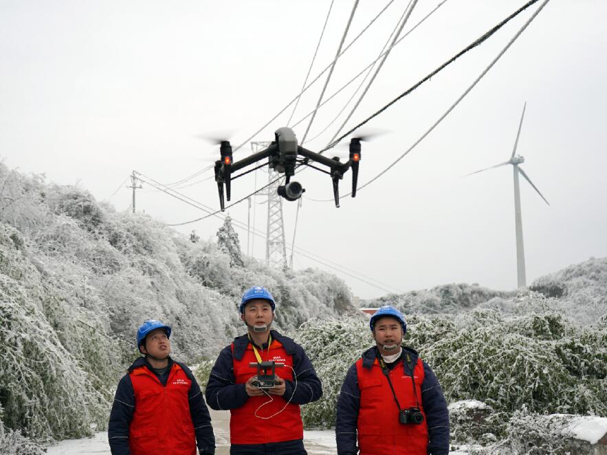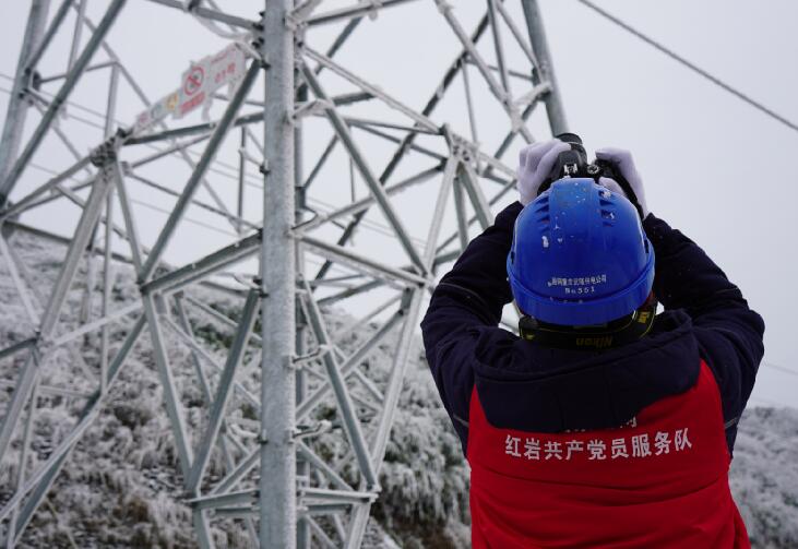 中國(guó)電力網(wǎng)訊 “110千伏四黎線今日最大覆冰厚度7.9毫米,目前風(fēng)速3.5米每秒,溫度零下4度……”“小心一點(diǎn),要走兩邊有草叢的地方,中間的道路結(jié)冰了,容易滑倒。”1月9日,國(guó)網(wǎng)重慶武隆供電公司輸電運(yùn)維檢修班成員吳鼎、趙樓等人來(lái)到武隆區(qū)和順鎮(zhèn)四眼坪鄉(xiāng)對(duì)覆冰線路開(kāi)展特殊巡視。在白雪皚皚的四眼坪,國(guó)家電網(wǎng)紅巖共產(chǎn)黨員服務(wù)隊(duì)隊(duì)服的顏色成了冰雪世界里最靚麗的一抹紅,他們手拿著無(wú)人機(jī)、砍刀、繩索、望遠(yuǎn)鏡、風(fēng)速儀等設(shè)備再一次踏入他們熟悉的“冰雪戰(zhàn)場(chǎng)”。