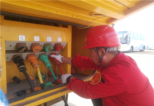 在接到開工儀式保電工作任務(wù)后,六五四供電分局高度重視,積極對接政府部門,了解用電需求,制訂詳細(xì)的保供電方案,落實(shí)專人負(fù)責(zé)、服務(wù)到位,提前一天組織分局黨員突擊隊(duì)的保電人員對涉及活動區(qū)域的重要線路和電力設(shè)備開展常態(tài)巡視,排查并消除可能出現(xiàn)影響正常供電的安全隱患和缺陷,保障保電工作零故障、零停運(yùn),并根據(jù)現(xiàn)場需要,準(zhǔn)備發(fā)電車一輛供儀式現(xiàn)場用電設(shè)備使用,全力打造項(xiàng)目開工儀式保電安全網(wǎng)?;顒赢?dāng)日上午,工作人員及發(fā)電車提前進(jìn)入保電現(xiàn)場,連接、調(diào)試開工儀式用電設(shè)備,并對相關(guān)設(shè)備進(jìn)行了檢查,蹲守保電現(xiàn)場,提高保電機(jī)動性,確保了開工儀式用電萬無一失。