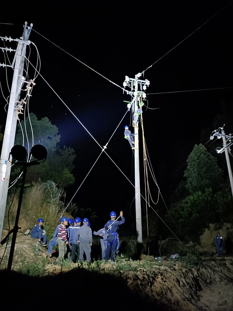 鳳慶供電局建設(shè)管理中心現(xiàn)場安全管控人員接到指令后,立即響,迅速組織施工項目部管理人員現(xiàn)場研究安排施工班組,一是調(diào)動就近施工資源增加施工力量;二是組織材料、車輛、工具等施工保障措施。三是準(zhǔn)備夜間施工的照明、防護(hù)用品等;四是安排工人的飲水、吃飯問題。五是解決工人加班工資問題。通過建設(shè)管理中心、勐佑供電所、施工項目部現(xiàn)場管理人員及施工班組全體施工人員齊心合力、共同奮斗,終于在5月26日凌晨3時50分結(jié)束全部施工任務(wù);并于2021年5月26日8時47分該線路投運送電正常。通過共同努力,按預(yù)期完成了施工任務(wù),避免了客戶長時間停電,挽回了損失。