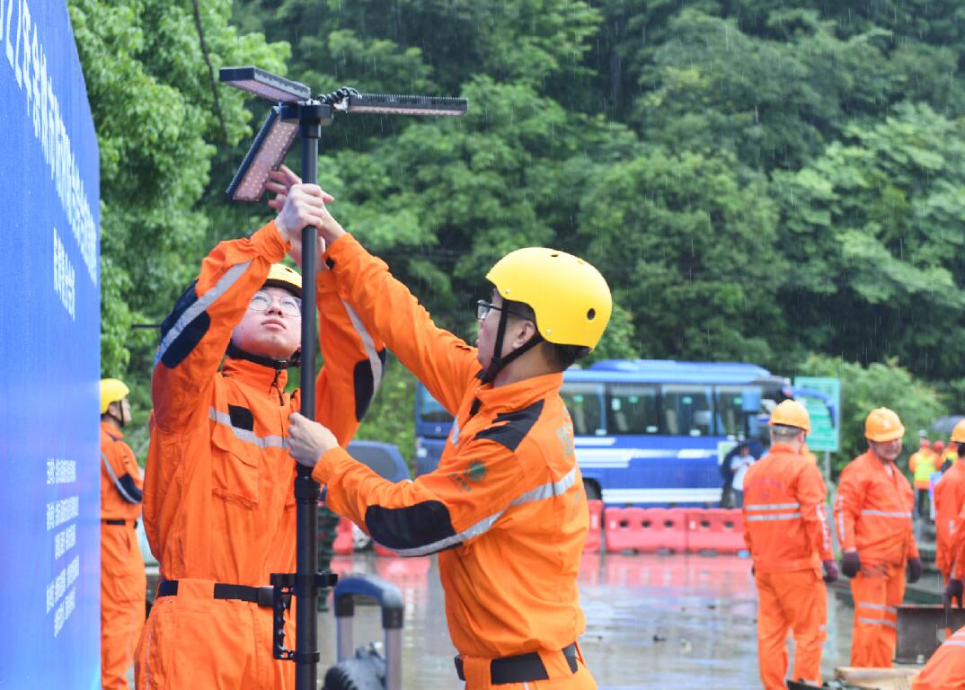 演練中,應(yīng)急隊員根據(jù)現(xiàn)場指揮長的指令迅速啟動防汛防臺應(yīng)急響應(yīng)。兩支搶險隊伍以最快速度到達(dá)災(zāi)區(qū),協(xié)助政府開展救援,為道路搶修作業(yè)現(xiàn)場提供應(yīng)急照明,對山區(qū)斷電線路進(jìn)行搶修,在完成演練任務(wù)的同時樹立了國家電網(wǎng)良好企業(yè)形象。演練也進(jìn)一步磨合了政企協(xié)同搶險保供電工作機(jī)制,全方位提升公司應(yīng)急搶險能力。