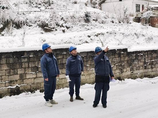 “10千伏粽嶺支線線路無覆冰。”“積雪太厚的地方用無人機巡線。”22日一早,該局百納供電所黨員突擊隊在10千伏4粽嶺支線開展防冰巡視。