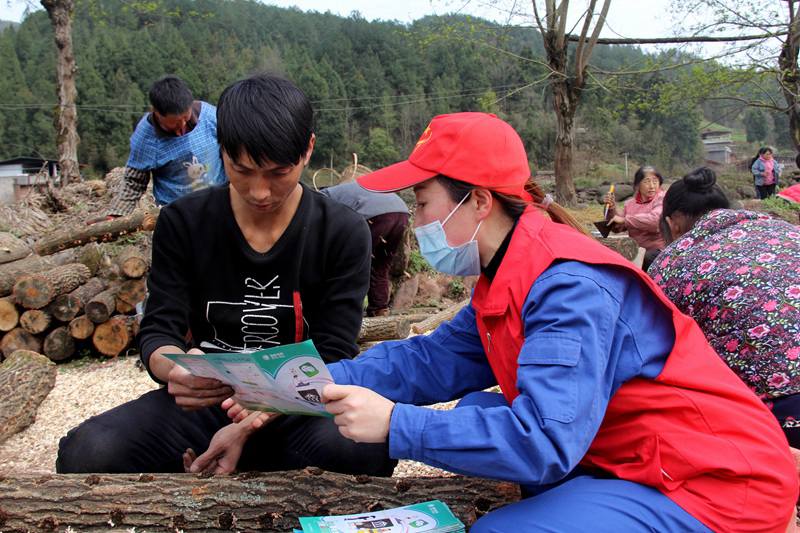 圖為:2020年3月9日,在位于四川省巴中市通江縣陳河鄉(xiāng)陳家壩村的四川裕德源生態(tài)科技有限公司陳河基地里,國(guó)網(wǎng)通江縣供電公司“紅星”志愿者為企業(yè)工人講解安全用電常識(shí)。程聰攝