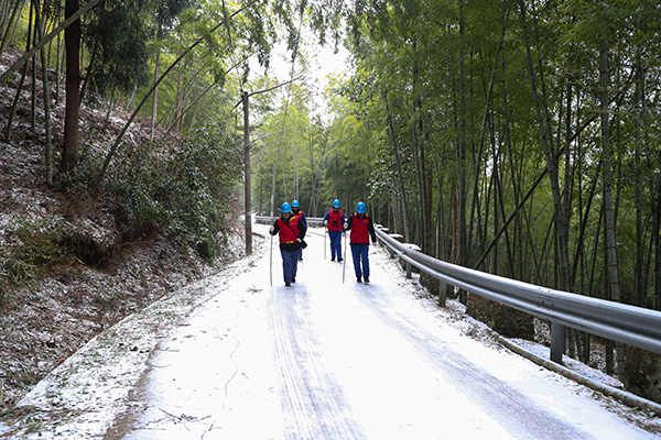 中國(guó)電力網(wǎng)訊 1月7日清晨,在平均海拔700米以上的浙江寧海雙峰山區(qū),隨著強(qiáng)冷空氣的抵達(dá),大山深處已覆上皚皚白雪。寧??h黃壇鎮(zhèn)雙峰片區(qū)有2900多戶村民,為了防止冰凍天氣以及積雪對(duì)高壓線路的影響,國(guó)家電網(wǎng)浙江電力(寧海)紅船共產(chǎn)黨員服務(wù)隊(duì)分成四組,一大早就開始對(duì)這里的高壓線路進(jìn)行巡視和基礎(chǔ)維護(hù)。