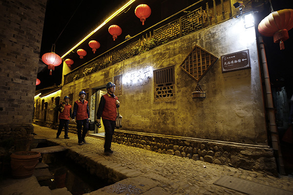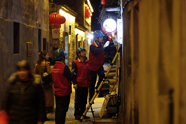 夜幕降臨,前童古鎮(zhèn)條條古巷的燈光開始亮起來,但古巷旁水渠里仍倒影著隊(duì)員們忙碌的身影。有了國網(wǎng)寧??h供電公司工作人員不辭辛勞的保供電,留浙過年的新寧海人在前童古鎮(zhèn)這個(gè)元宵節(jié)將過得格外溫暖。