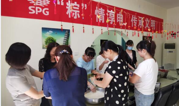 職工餐廳活動現(xiàn)場,一片歡聲笑語、喜慶祥和的畫面,有手工制作特長的女職工手把手地教大家包粽子,大家圍坐在一起,學(xué)得認(rèn)真、干得起勁、忙得不亦樂乎。折葉、填米、放棗、成形、纏線。剛起手學(xué)做的員工,做出了形狀怪異的“棕子”,使大家樂開懷。有特長的員工做的粽子造型規(guī)則時,又忍不住小得意,將自己與滿意的“作品”合影留念,小小的粽子傳遞著濃濃的同事情誼,活動使大家在相互協(xié)作的包粽子過程中,增進(jìn)了友情,拉近了距離,同享節(jié)日歡樂。