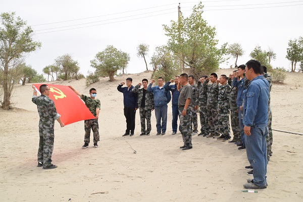 隨后,廣大黨員來到十六團(tuán)胡楊林路段,開展“大漠錘黨性,胡楊伴我行”素質(zhì)拓展訓(xùn)練活動?;顒忧?,全體黨員肅立莊重,面對黨旗鏗鏘有力地重溫入黨誓詞,表達(dá)對黨的忠誠;副書記趙勇帶領(lǐng)大家學(xué)習(xí)《簡明新疆地方史》,使黨員們進(jìn)一步了解新疆征服荒原的創(chuàng)業(yè)史和奮斗史,要繼承和弘揚(yáng)兵團(tuán)精神,切實履行好兵團(tuán)屯墾戍邊的職責(zé)使命。大家圍繞“兵團(tuán)精神”“胡楊精神”展開討論,“小時候的我,并沒有體會到身為一個兵團(tuán)人有什么特殊意義,應(yīng)該肩負(fù)什么責(zé)任,隨著年齡的增長,兵團(tuán)的歷史逐漸清晰起來,無論身處何地,我們都要有頑強(qiáng)的毅力和堅定的信念。”新發(fā)展預(yù)備黨員熊伍環(huán)發(fā)表個人感言;“在日常的工作中,我們要以認(rèn)真負(fù)責(zé)的工作態(tài)度對待每一項任務(wù),黨員更要擔(dān)當(dāng)爭先,將胡楊精神內(nèi)化為精神動力,不忘初心,恪盡職守,爭做講政治、有信念,講規(guī)矩、守紀(jì)律,講奉獻(xiàn)、有作為的電力人”。工區(qū)主任陳亮談道。