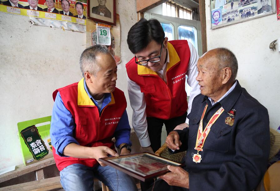中國電力網(wǎng)訊 11月19日上午,浙江慈溪市供電公司紅船共產(chǎn)黨員服務(wù)隊王軍浩、宋鑫等黨員志愿者,帶著水果、牛奶等慰問品,懷著對退伍老兵的崇敬之情,來到坎墩街道三群村,走訪看望了九旬退伍老兵傅萬久。