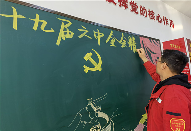“線下”單位的青年黨員書(shū)寫(xiě)黑板報(bào),為了讓單位全體職工更全面、更及時(shí)地了解會(huì)議精神,黨員將十九屆六中全會(huì)的會(huì)議重點(diǎn)內(nèi)容經(jīng)過(guò)精心設(shè)計(jì)、編排,搬到了單位的黑板上。正在黨員活動(dòng)室閱讀黑板報(bào)的積極分子說(shuō):“這個(gè)板報(bào)對(duì)全會(huì)的內(nèi)容歸納清晰、通俗易懂,這樣的學(xué)習(xí)形式讓我好像一下回歸學(xué)生時(shí)代,很受大家的歡迎。”除此之外,六五四供電公司黨支部還組織黨員結(jié)合工作崗位深入交流研討、撰寫(xiě)心得體會(huì),在學(xué)習(xí)中談?wù)J識(shí)體會(huì)、話發(fā)展變化,深化思想啟迪、促進(jìn)共同提高。