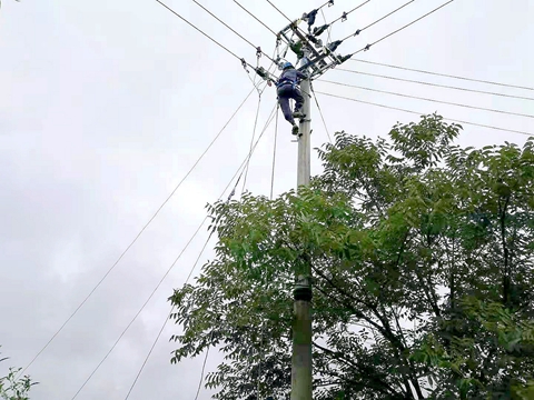 10千伏虎京線梯后山支線,羊圈山配變380伏羊圈山TB3.2號(hào)桿(四方桿),倒桿斷線,配電管理所報(bào)修人員樂禮培接到95598報(bào)修信息,與客戶聯(lián)系后,趕到現(xiàn)場(chǎng)查看,是380伏四方桿,倒桿斷線。從此桿接下戶線3戶,隔離電源,報(bào)告領(lǐng)導(dǎo),需要換桿換線搶修。配電管理所任海忠主任立即組織施工隊(duì)到現(xiàn)場(chǎng)進(jìn)行勘察,確定施工方案,審批搶修物資。受災(zāi)戶楊徳久跟工作人員說:“昨晚上一夜下大雨,6點(diǎn)左右聽到房后蹦的一聲響,我以為是打雷,起床開燈,燈不亮,要燒水,電磁爐也沒有反應(yīng),再轉(zhuǎn)到電表旁看看總閘給跳,嚇我一跳,電表箱懸在空中,電桿倒了,等緩過神來才打95598報(bào)修電話。你們報(bào)修師傅來到,我心才落下!現(xiàn)在,我高興!感謝供電公司,感謝各位師傅,把電桿換成高的,總線也換成巴掌寬的叫什么線該?”凃師傅告訴他,這叫集束導(dǎo)線。不單只是他們這里,在端午節(jié)期間配電管理所消除了5個(gè)安全隱患,提高了供電可靠性。