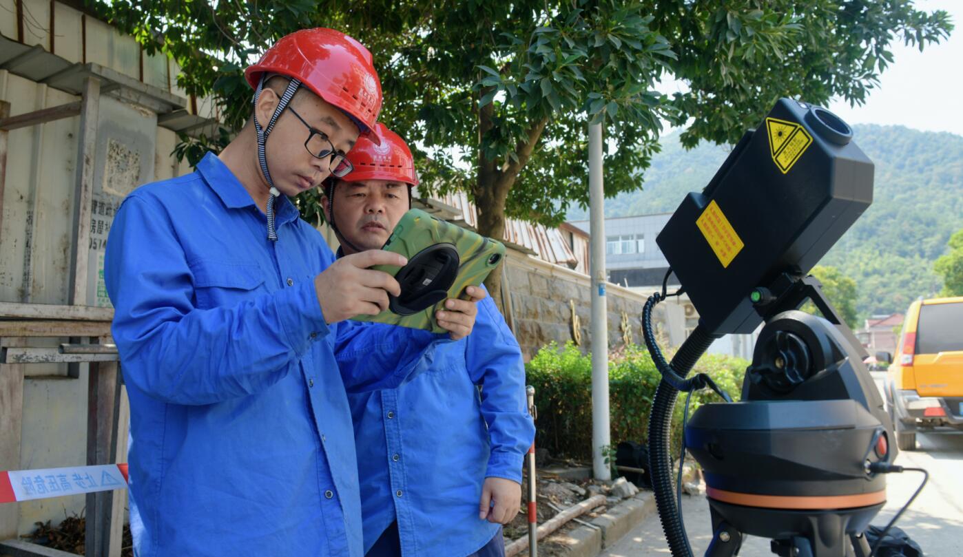 情況危急,接到消缺指令后,輸配電運(yùn)檢中心員工顧金苗、方俊杰、張?jiān)懒⒓磾y帶大功率遠(yuǎn)程激光異物清除器(又稱:激光炮)前往現(xiàn)場(chǎng)。