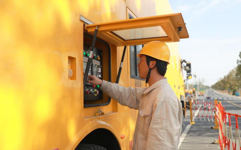 “相較傳統(tǒng)的配網(wǎng)計(jì)劃施工需要停電的情況,通過(guò)中、低壓發(fā)電車結(jié)合的形式,可以最大程度減少停電檢修的影響,保障周邊重要用戶在配網(wǎng)施工期間的正常用電。”溧陽(yáng)供電運(yùn)檢服務(wù)分中心工作人員項(xiàng)大衛(wèi)介紹道。