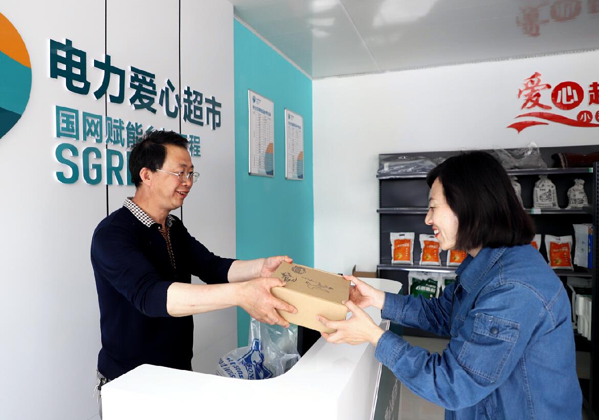 國網(wǎng)固原供電公司黨員在馮碑村“電力愛心超市”助農(nóng)消費