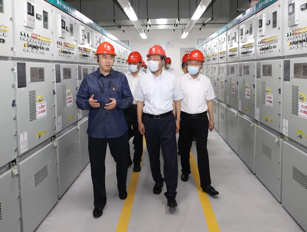 盛夏時節(jié),驕陽似火。辛保安首先來到110千伏同寧變電站,實地查看了設備運行情況。該站是國網(wǎng)北京電力迎峰度夏重點工程,于4月份投運,對滿足客戶用電需求、保障電力可靠供應發(fā)揮了積極作用。辛保安聽取了北京公司電力保供、重點工程建設情況的匯報。他指出,要堅決扛牢電力保供首要責任,堅持政企協(xié)同聯(lián)動、源網(wǎng)荷儲發(fā)力、各方齊心合力,科學安排電網(wǎng)運行方式,強化作業(yè)現(xiàn)場安全管控,抓實抓細疫情防控工作,著力提高應急響應能力,確保圓滿完成迎峰度夏各項任務。要堅持高起點、高標準規(guī)劃建設一流城市電網(wǎng),充分發(fā)揮電網(wǎng)基礎支撐、投資拉動和服務保障作用,全力推進重大工程建設,加大開工力度、加快建設進度,有效釋放產(chǎn)業(yè)鏈上下游市場需求,助力穩(wěn)經(jīng)濟穩(wěn)增長。