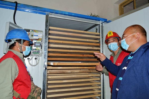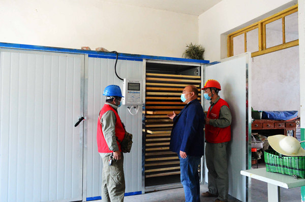 “齊書記,3個接電工作日正趕上五一長假,我們怕廠家調(diào)試烘干設備時間緊影響生產(chǎn),就提前來了。”施工當天,黃永亮一邊和服務隊員做好施工前的防疫消殺工作,一邊向齊志強解釋。