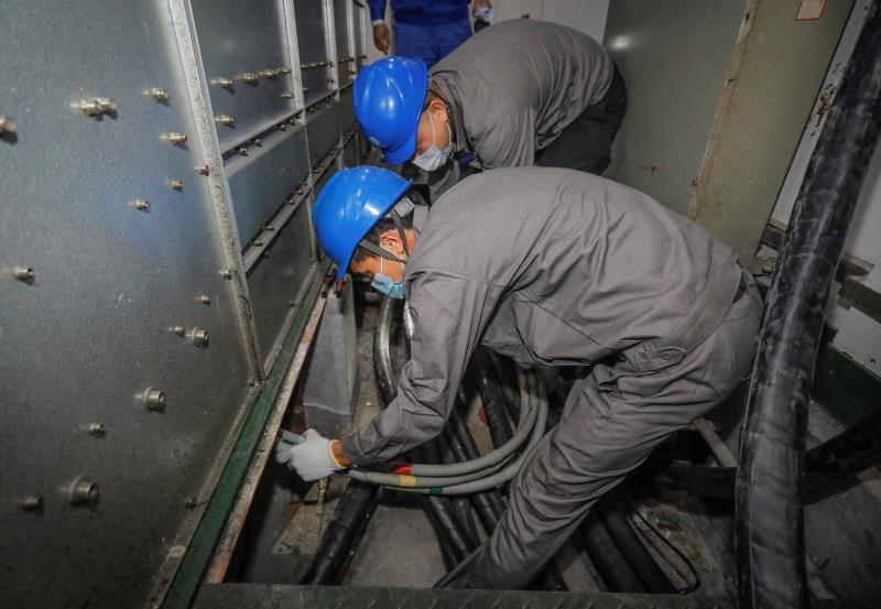 “門診明天6時開始工作,我們必須在凌晨4時前通電,保證門診部明天正常運轉(zhuǎn)!” 工程負(fù)責(zé)人張軍現(xiàn)場號令。30日晚,20余名電力員工在李惠利醫(yī)院10千伏環(huán)網(wǎng)站周圍拉起安全施工防護欄和警界線,一場10千伏新電力用電設(shè)備投運施工在星夜展開。老配電房電纜溝窄小,2名員工只能側(cè)著身把舊導(dǎo)線用力拉出來,再把新電纜放進去。新配電箱安裝時,供電員工只能跪著安裝碗口粗的銅電纜,施工難度非常大。而供電員工心理明白,這是一場與時間賽跑、為生命加速的工程。